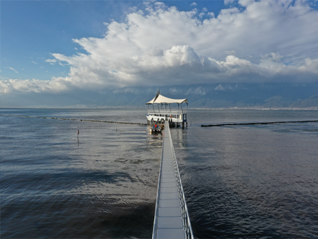采用高效可調(diào)式渦井取藻、藍(lán)藻囊團(tuán)破壁、一體化二級(jí)強(qiáng)化氣浮等核心技術(shù),岸上站點(diǎn)藻水分離系統(tǒng)集成了藍(lán)藻打撈、脫氣沉降、氣浮分離、脫水等多個(gè)環(huán)節(jié)的技術(shù)和設(shè)備,形成了可規(guī)?;凸S(chǎng)化處理藍(lán)藻的基站。適用于藍(lán)藻水華長(zhǎng)期規(guī)律性、大范圍聚集區(qū)域的常態(tài)化應(yīng)急處置。